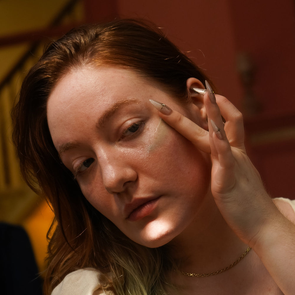 • Warm a pea-size amount in your palms and gently press into the face and neck using upward strokes.