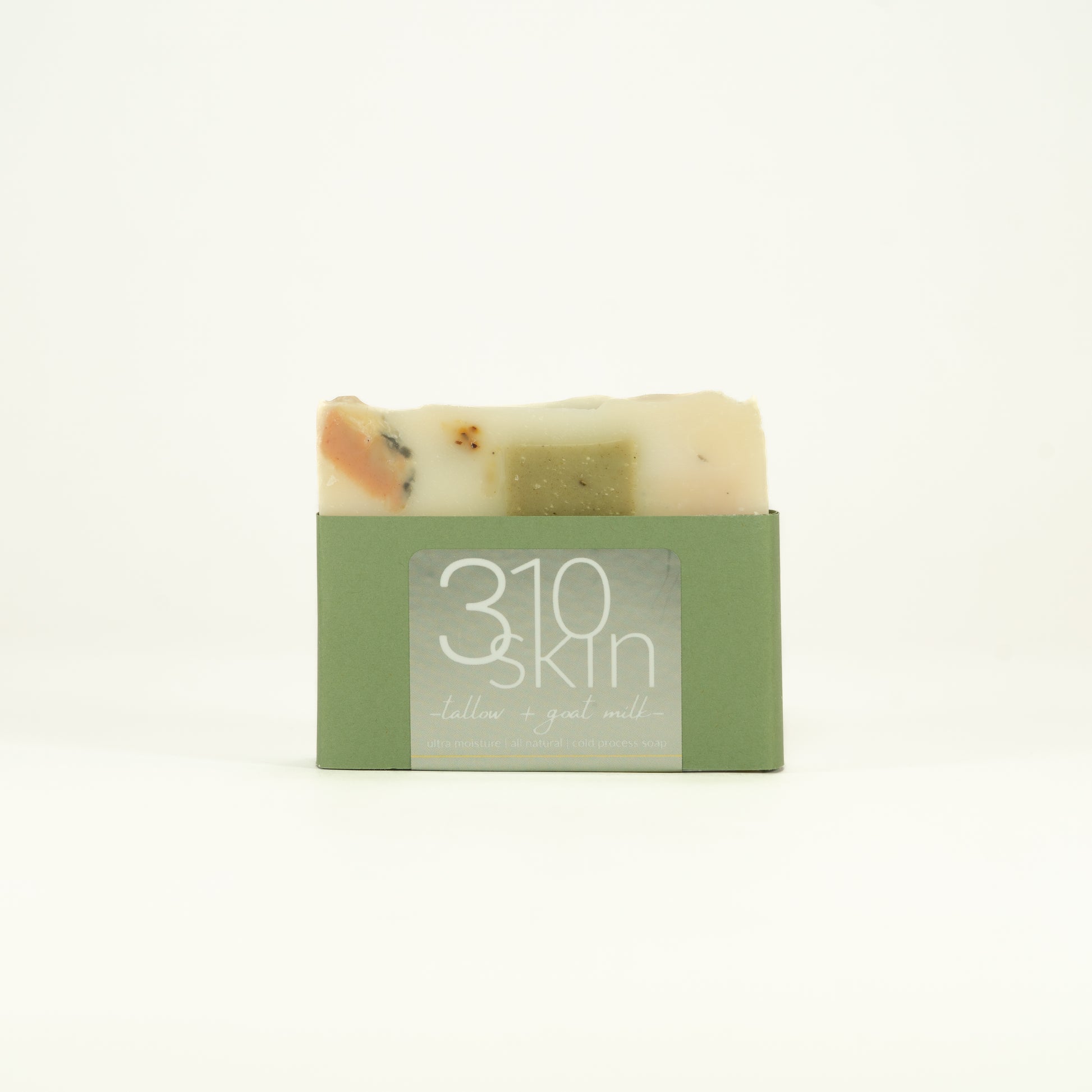 Tallow, Coconut Oil, Castor Oil, Goat Milk, Clays, Botanicals